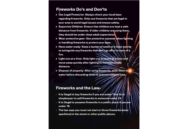 As we approach Halloween, Bonfire Night and New Year's Eve, I wanted to take this opportunity to remind you all of some quick fireworks safety advice. It is important that you stay vigilant and please remember to ring 999 in an emergency.