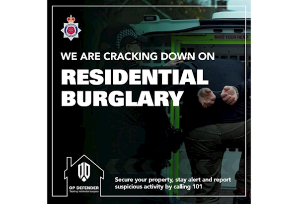 Resident, We noticed that you have said Residential Burglaries were a top priority regarding issues in your local area. Here is how you can protect your and your home. Operation Defender is Lancashire Constabulary’s campaign designed to fight residential burglaries. Report suspicious activity on our website or call 101. If a crime is happening now, or there is a threat to life, dial 999.