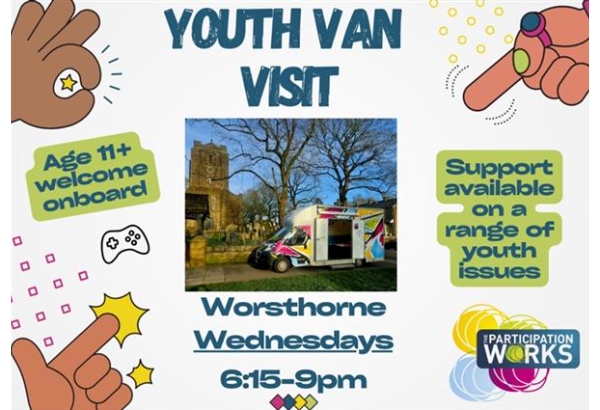 Please find attached information on the Youth Van visiting Worsthorne Village Square on Wednesday 6:15 - 9pm kindly supplied by Participation Works.